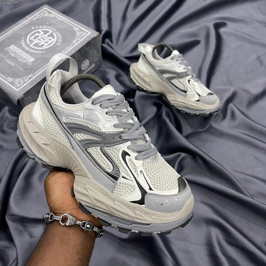 AeroStrike™ Chunky Mesh Sneakers – Grey & White Trail Runner Edition